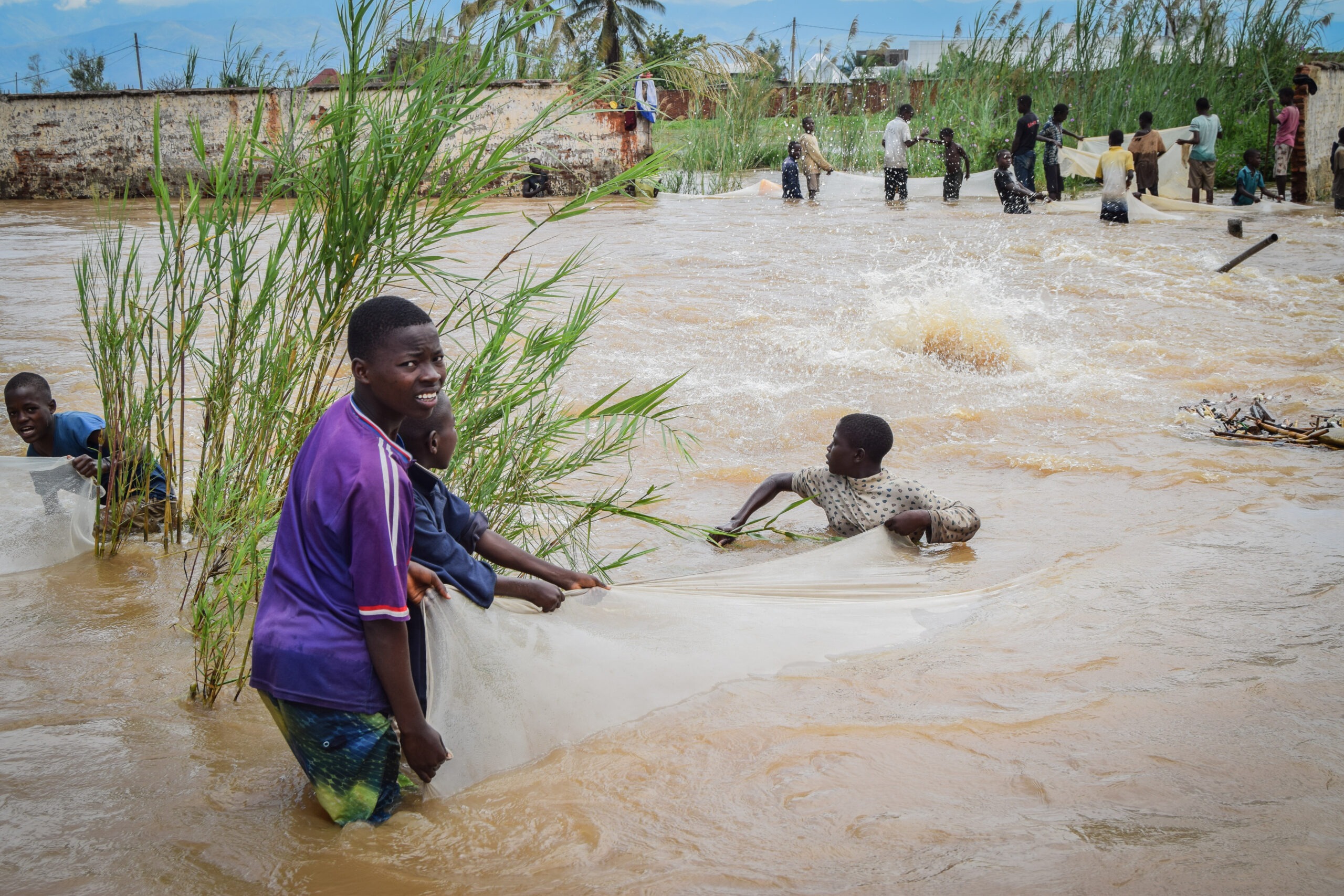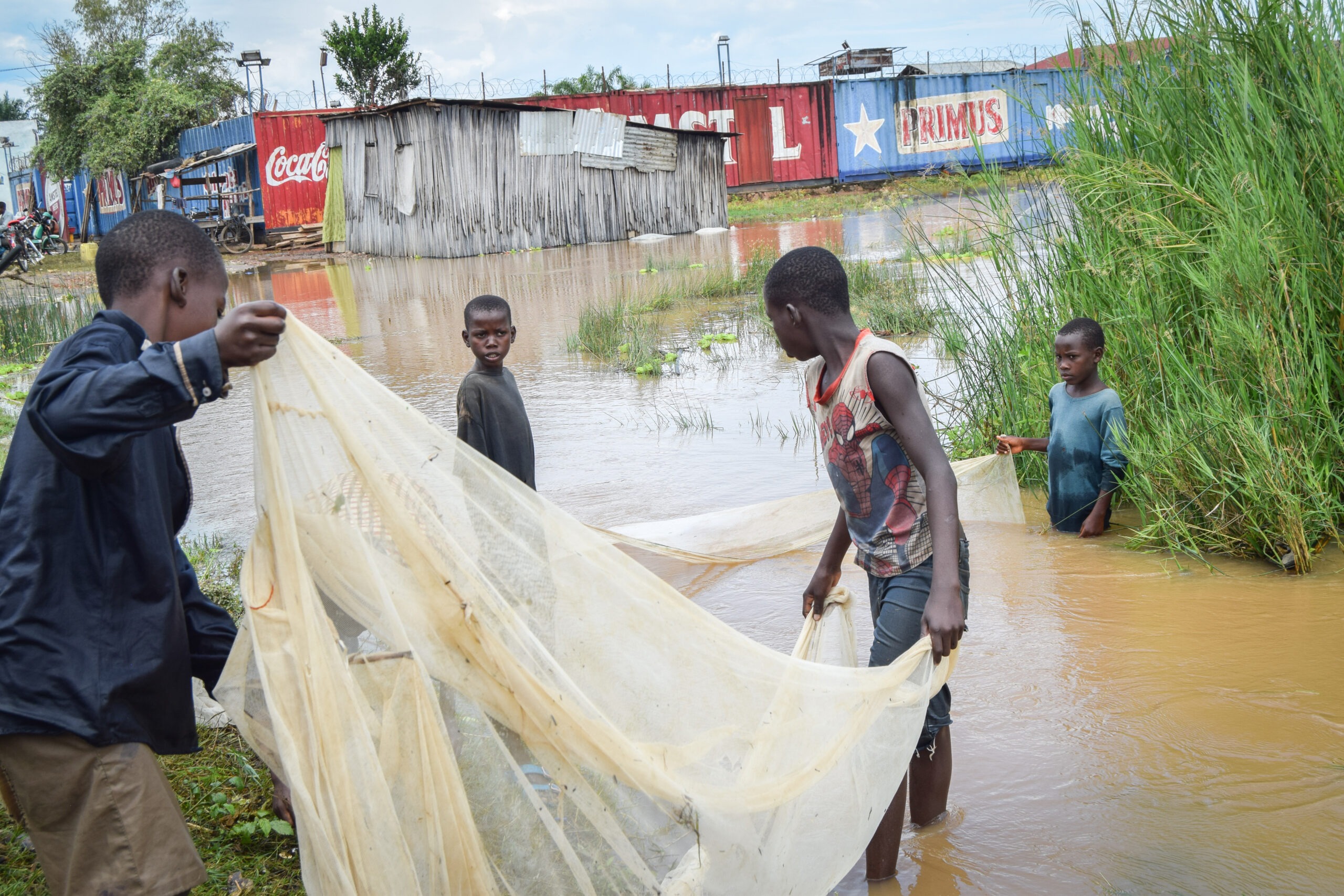 Rising water levels in Lake Tanganyika and increasingly erratic rainfall are also leading to more and more flooding in Burundi. Again and again, the inhabitants of Gatumba, near the border with the DR Congo, have to seek shelter from the masses of water. The youth of Gatumba make the best of the situation and use the newly created rivers to catch fish. Shot 2021.